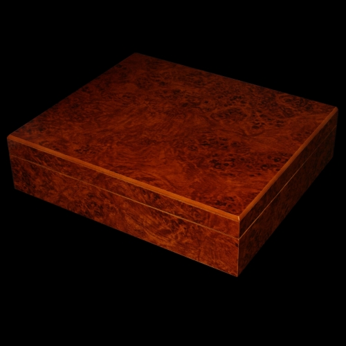 Humidor wyłożony drewnem cedrowym, wyposażony w nawilżacz dla zapewnienia optymalnej wilgotności spód oklejony filcem.